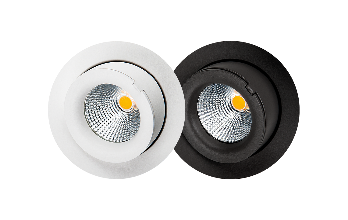 Attraktives Downlight für Innen- und Außenbereiche, ideal für schräge Wände, Überhänge und Effektbeleuchtung. Gehäuse aus pulverbeschichtetem Druckgussaluminium oder gebürstetem Stahl mit Glasabdeckung. 42° Ausstrahlwinkel für präzise Lichtakzente.