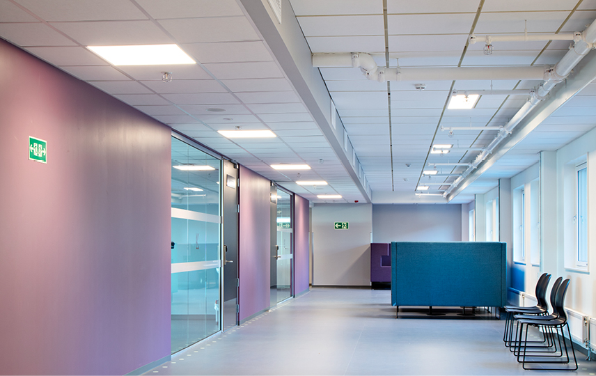 Das Sense-Panel hat eine schlanke Außenwirkung durch die Höhe von nur 10 mm. Schmaler Rahmen sorgt für attraktiven Look und hohe Effektivität. Sense kann in sichtbaren T-Schienen-Decken ohne Zubehör und in verborgenen T-Schienen-Decken montiert werden. Das macht Sense zu einem All-Round-Qualitäts-Panel, das überall benutzt werden kann. Sense ist in mehreren LumenPaketen erhältlich, Phasenabschnittsdimmung sowie DALI, je nachdem, welches Treiber-Kit gewählt wird (Zubehör).