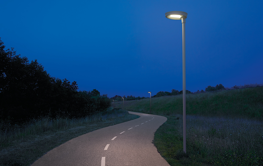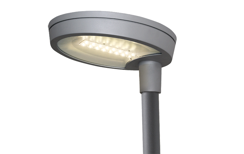 Leuchte zur Mastmontage, IP66-klassifiziert. Leuchtengehäuse aus Druckguss-Aluminium, Pulverbeschichtung in schwarzer oder grauer Struktur. Reflektor aus Aluminium, weisse Pulverbeschichtung. Optik aus gehärtetem Glas mit direkter Lichtverteilung. Für Montage an 60 mm Mast.
