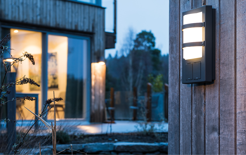 Stoßfeste Wandleuchte mit dekorativen Schutzstreifen für den Außengebrauch. Die Trio Socket verfügt über zwei praktische Schukosteckdosen. Damit eignet sie sich perfekt für den Heizpilz auf der Veranda, den Hochdruckreiniger im Carport und alle anderen Orte, an denen Sie sich schon immer eine zusätzliche Steckdose gewünscht haben. Einfaches Anschließen mit Schnellklemmen und zwei Ein-/Ausgängen für Kabel. Sichtbare oder verborgene Kabeleinführungen möglich.