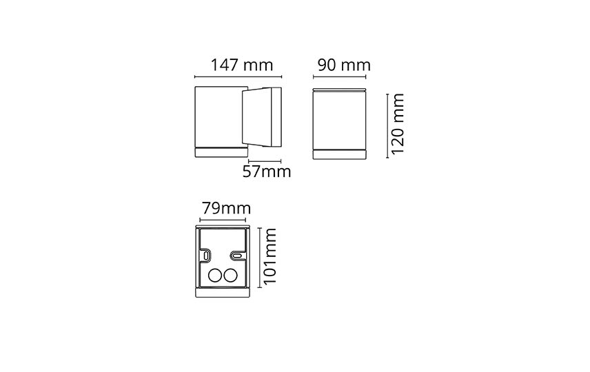 Metro 1x35W Noir Coupure de phase, Codes-articles: 614690, EAN: 7021986146905, IP65, IK07, Électrique: Wattage du système: 35W, Tension: 220-240V, Source lumineuse: Type de source lumineuse: LED, Douille: GU10, Distribution de la lumiére: Directe, Optique: Verre transparent, Faisceau: 35°, ULOR (<1%): Oui, Convertisseurs: Type: Coupure de phase, Protection: Classe Isolation: Classe II, IK Class: IK07, IP Class: IP65, Matériaux et finition: Embase: Aluminium, Couleur: Noir (RAL 9004), Matériau de la verrine: Verre trempé, Montage/Connexion: Montage: Surface, Intérieur / Extérieurs, Module: 1x35W, Connexion: Bornier sans vis, Dimensions: Largeur (mm) W: 90, Hauteur (mm) H: 120, Profondeur\_(D): 147, Poids (kg) brutto/netto: 1.15 / 0.9, Emballage: Packaging dimensions (mm): 147 x 90 x 120