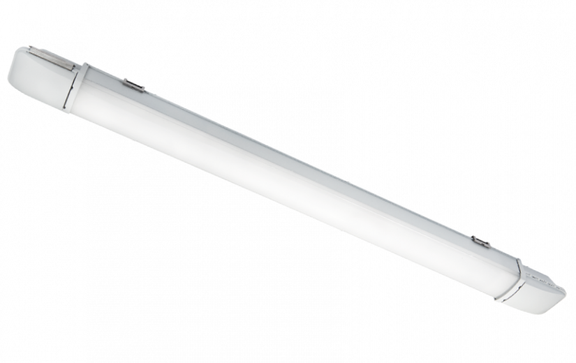 Area 66 Gris 4500lm 4000K Ra>80 Non dimmable, Codes-articles: 120001, EAN: 7021981200015, IP66, IK10, Électrique: Wattage du système: 36W, Tension: 220-240V, Nombre maximal de luminaires par disjoncteur: B10: 12, B16: 19, C10: 20, C16: 32, PE Courant de fuite (mA): 0.27, Source lumineuse: Type de source lumineuse: LED, Flux lumineux: 4500lm, Efficacité lumineuse: 125 lm/W, Température des couleurs: 4000K, Rendu des couleurs (CRI): Ra>80, Facteur MacAdams: SDCM: 3, Durée de vie: L80/B10>100,000, Durée de vie: L90/B50>50,000, Température ambiante min.: -25°C, Température ambiante max.: 45°C, Durée de vie à temp. ambiante max.: L80/B20>50,000, Distribution de la lumiére: Directe, Optique: Opale, Faisceau: 100°, UGR: UGR<28, Convertisseurs: Type: Non dimmable, Protection: Classe Isolation: Classe I, IK Class: IK10, IP Class: IP66, Classe de protection incendie: 850°C - 30s, Énergie et approbations: Source lumineuse de classe énergétique: D, Breeam: Conforme Hea 01 pour un éclairage sans scintillement, BVB: Oui, Sunda Hus: C+, Approuvé pour les aliments (IFS et HACCP): Oui, Matériaux et finition: Embase: Polycarbonate stabilisé aux UV, Couleur: Gris, Matériau de la verrine: Polycarbonate stabilisé aux UV, Montage/Connexion: Montage: Surface, Intérieur, Connexion: Bornier sans vis à 5 pôles avec câblage traversant 5 x 2,5 mm², Dimensions: Longueur (mm) L: 1174, Largeur (mm) W: 92, Hauteur (mm) H: 70, Poids (kg) brutto/netto: 2.832 / 2.36, Emballage: Packaging dimensions (mm): 1230 x 110 x 80