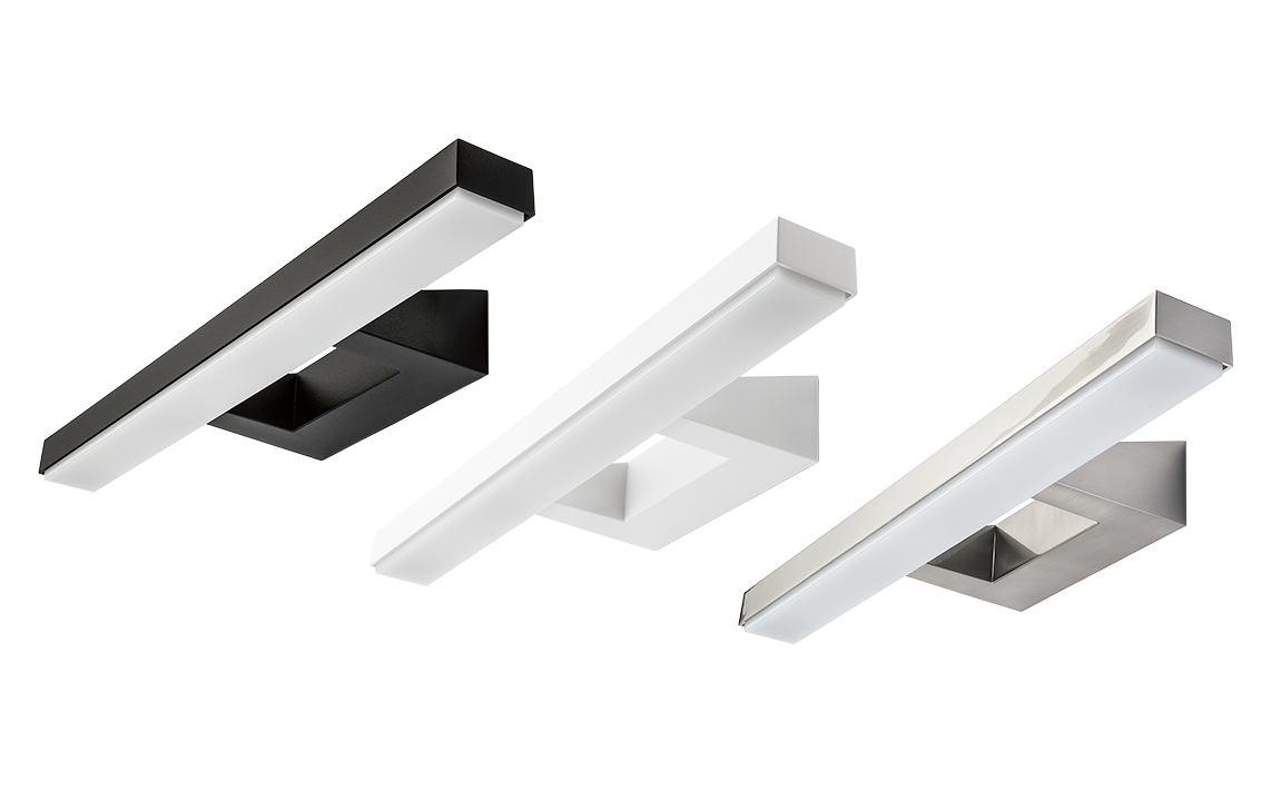 Luminaire stylé, moderne et dimmable qui convient à tous les types de salle de bain. Disponible en noir, blanc et acier brossé en 2700K/3000K/4000K. Corps du luminaire en aluminium thermolaqué. Facile à monter avec connecteur rapide entre le luminaire et la fixation murale. Accessoire de fixation pour montage au-dessus d’une armoire de salle de bain ou d’une étagère.