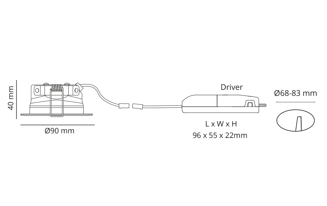 Junistar ECO Isosafe Blanc 600lm 3000K Ra>90 Coupure de phase, Codes-articles: 905214, EAN: 7021989052142, IP44, Électrique: Wattage: 4.9W, Wattage du système: 5.5W, Tension: 220-240V, Nombre maximal de luminaires par disjoncteur: B10: 105, B16: 168, C10: 105, C16: 168, Source lumineuse: Type de source lumineuse: LED, Flux lumineux: 600lm, Efficacité lumineuse: 109 lm/W, Température des couleurs: 3000K, Rendu des couleurs (CRI): Ra>90, Facteur MacAdams: SDCM: 2, Durée de vie: L90/B10>100,000, Distribution de la lumiére: Directe, Optique: Reflector, Faisceau: 42°, UGR: UGR<22, Convertisseurs: Type: Coupure de phase, Protection: Classe Isolation: Classe II SELV, IP Class: IP44, Énergie et approbations: Source lumineuse de classe énergétique: C, Breeam: Conforme Hea 01 pour un éclairage sans scintillement, BVB: Oui, Test de résistance au feu de 60 minutes réussi conformément à la norme EN 1365-2: Oui, Test d'isolation acoustique réussi selon EN ISO 10140-2:2021 et 10140-3:2021 partie E: Oui, Sunda Hus: C-, Matériaux et finition: Embase: Aluminium, Couleur: Blanc (RAL 9003), Matériau de la verrine: Verre trempé, Montage/Connexion: Montage: Encastré, Intérieur, Connexion: Bornier sans vis, Dimensions: Hauteur (mm) H: 40, Diameter (mm) D: 90, Cut-out (mm): 68-83, Poids (kg) brutto/netto: 2.51 / 0.284, Emballage: Packaging dimensions (mm): 330 x 200 x 90, Nombre par paquet: 8