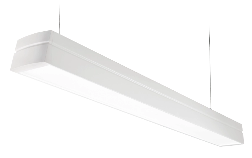 Directe of direct/ indirecte pendelarmatuur met 3000K of 4000K leds. Slank design. Verblindingsvrije prismaoptiek van PMMA met mogelijkheid tot dimbare oplossing (DALI of Tunable White).