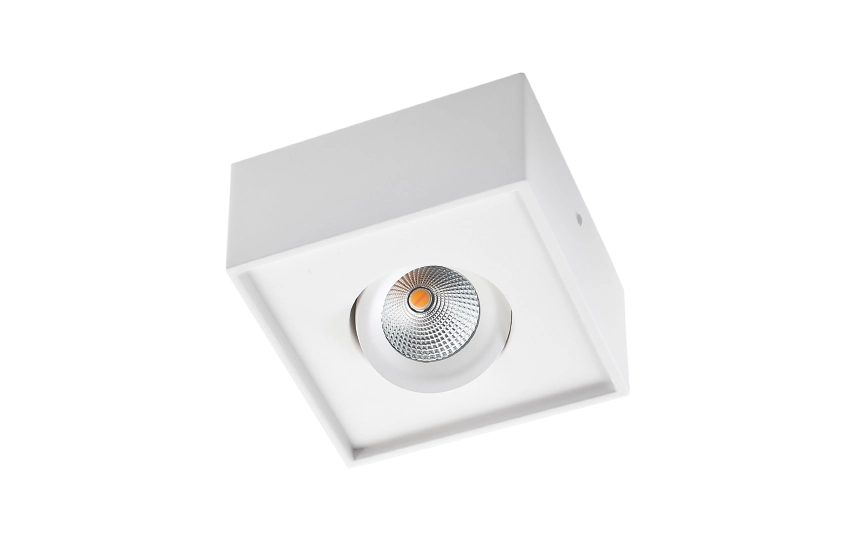 Opbouwdownlight voor binnenlichting met een traploze gyroscopische 360°beweging. Rechtstreekse montage op het plafond of op bekende plafondbussen, geïntegreerde en efficiënte ledchip, versies met DimToWarm 2000K - 2800K via dimbare fase afsnijdimmer of DALI-sturing (optie). Snelkoppeling tussen armatuurbehuizing en plafondmontageplaat. De armatuurbehuizing wordt erop geklikt en vervolgens met 2 onzichtbare interne schroeven vastgemaakt.