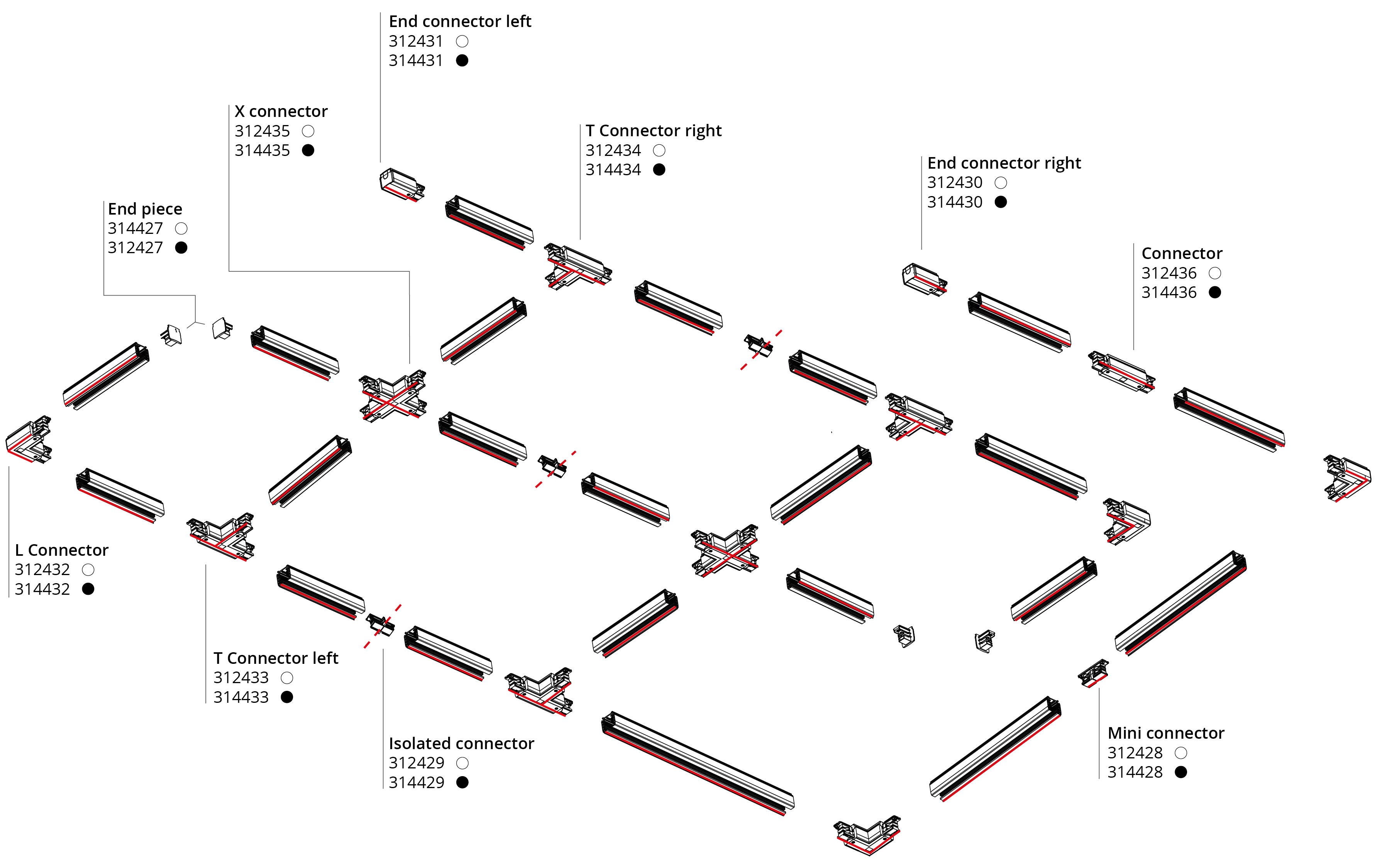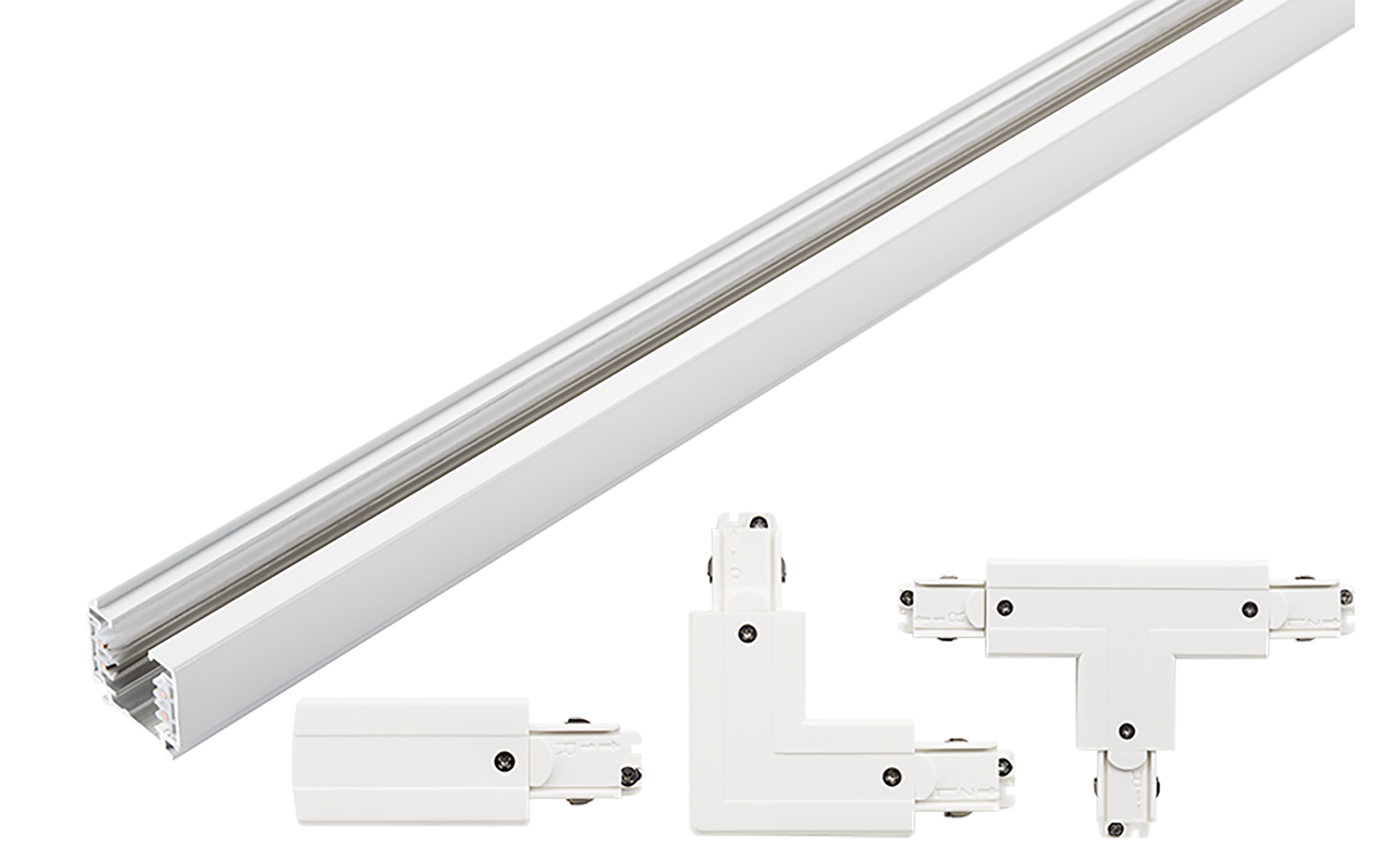 ShopLine 3-fase is een stijlvol railsysteem met rails en accessoires in het wit en zwart. Met zijn smalle ontwerp en aantrekkelijke matte afwerking past deze bij elk plafond. Perfect voor winkels, kantoren en tentoonstellingen.