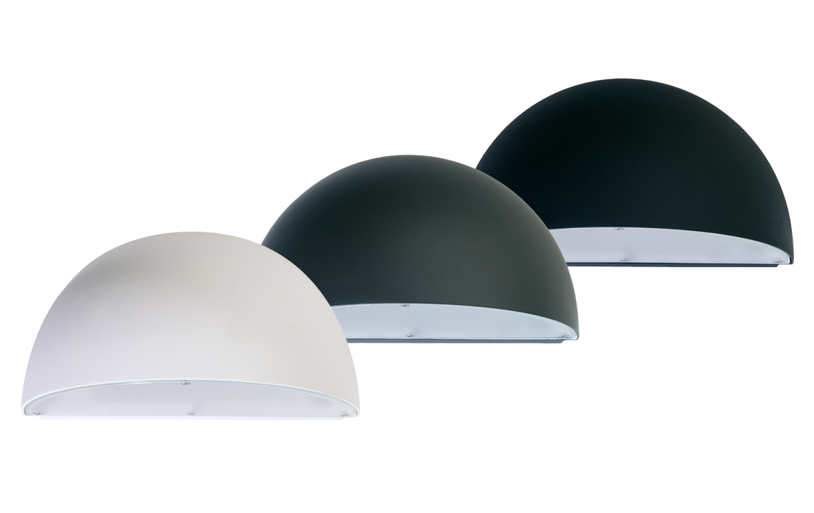 Mooie, halvemaanvormige wandarmatuur voor binnen- en buitenmontage. Vervaardigd van onder druk gegoten en gepoedercoat aluminium. Afscherming van uv-gestabiliseerd opaal polycarbonaat. 2 in-/uitgangen voor kabels, snelklemmen kunnen worden doorgelust. IP65 en IK10-beschermingsgraad tegen vandalisme.