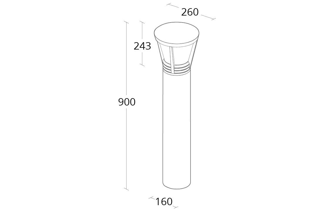 5703821177290_Ray Bollard II 900 Asymmetric Grey 6W 3000K Ra70