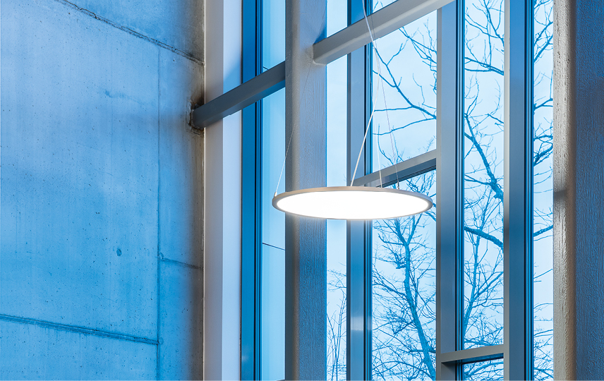 Sense 800 Pendel ist eine Pendelleuchte mit extrem flachem Profil für großzügige Raumkonzepte. Mit einem Durchmesser von 800 mm und einer Höhe von nur 18mm wirkt sie nahezu schwebend im Raum.