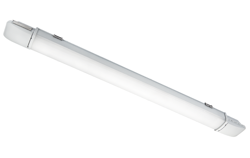 IP66 Leuchte zur Deckenmontage. Aus UV-stabilisiertem Polycarbonat. IK10. Schlankes Design, einzigartiger Einhand-Verriegelungsmechanismus an beiden Enden für eine sehr einfache und schnelle Installation. Möglichkeit zur Durchverdrahtung über Steckklemmen, 5x2,5mm².