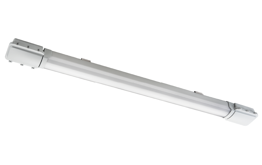 Das Leuchtengehäuse besteht aus hartem, UV-stabilisiertem und chemikalienbeständigem Polycarbonat. Die Beschichtung ist beständig gegen Ammoniak, Waschmittel* usw. und macht die Leuchte auch für Autowaschanlagen und ähnliche Einrichtungen geeignet. Die Montage ist einfach, da die Leuchte in die Montageklammern eingerastet und mit dem einzigartigen Einhand-Schließmechanismus an beiden Enden befestigt wird. Kabelanschluss mit doppelter Kabelverschraubung an jedem Ende und Durchgangsverdrahtung bieten volle Flexibilität für größere Installationen.