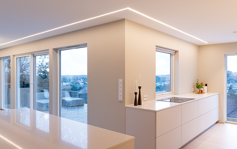Der LED-Streifen kann in eines der vier angebotenen StripLine-Aluminiumprofile für die Aufbau-, Eck-, Einbau- oder Einputz-Montage eingebracht werden. In Innenbereichen ist auch eine Nutzung ohne Profile möglich. Die Profile werden mit einer robusten Frontabschirmung aus Polycarbonat geliefert, die sich mühelos mittels Reliefhaken anbringen und entfernen lässt.