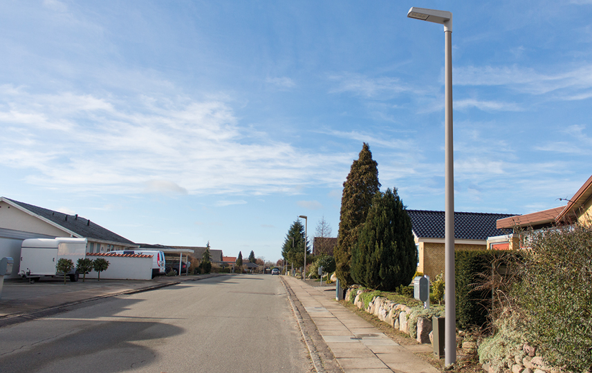 Luminaire LED pour montage en top de mât. IP66. Socle et tête en fonte d’aluminium en gris texturé, face avant en verre trempé. Solutions optiques à lentille directe (lentilles multiples). Complet avec alimentation LED pour sources lumineuses LED montées sur platine avec connexion interne et pré-câblé avec câble de raccordement (6m). Design: Christian Hvidt