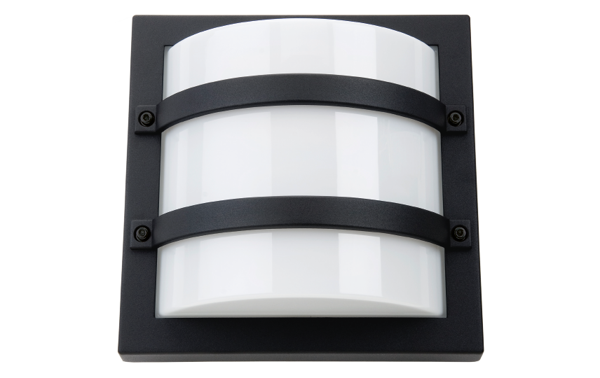 Largo Noir 550lm 3000K Ra>80 Twilight, Codes-articles: 624569, EAN: 7021986245691, IP65, IK10, Électrique: Wattage du système: 10W, Tension: 220-240V, Nombre maximal de luminaires par disjoncteur: B10: 33, B16: 52, C10: 40, C16: 64, Source lumineuse: Type de source lumineuse: LED, Flux lumineux: 550lm, Efficacité lumineuse: 55 lm/W, Température des couleurs: 3000K, Rendu des couleurs (Ra): Ra>80, Facteur MacAdams: SDCM: 3, Durée de vie: L70/B10>50,000, Distribution de la lumiére: Directe, Optique: Opale, Faisceau: 130°, Groupe de risque photobiologique: RG 0, Convertisseurs: Type: Twilight, Protection: Classe Isolation: Classe II, IK Class: IK10, IP Class: IP65, Classe de protection incendie: 850°C - 30s, Matériaux et finition: Embase: Aluminium, Couleur: Noir (RAL 9004), Matériau de la verrine: Polycarbonate stabilisé aux UV, Montage/Connexion: Montage: Surface, Intérieur / Extérieurs, Connexion: Bornier sans vis, Dimensions: Largeur (mm) W: 240, Hauteur (mm) H: 240, Profondeur\_(D): 112, Poids (kg) brutto/netto: 2.28 / 1.9, Emballage: Packaging dimensions (mm): 260 x 260 x 130