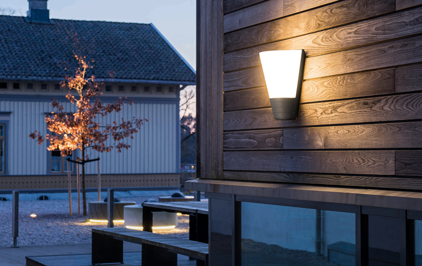 Design: Christian HvidtRay Wall est un luminaire simple et élégant pour entrées et façades. En plus d’offrir une lumière dirigée vers les allées à côté de bâtiments, ce luminaire fournit également une lumière agréable sur les murs de façade et sert d’élément architectural.