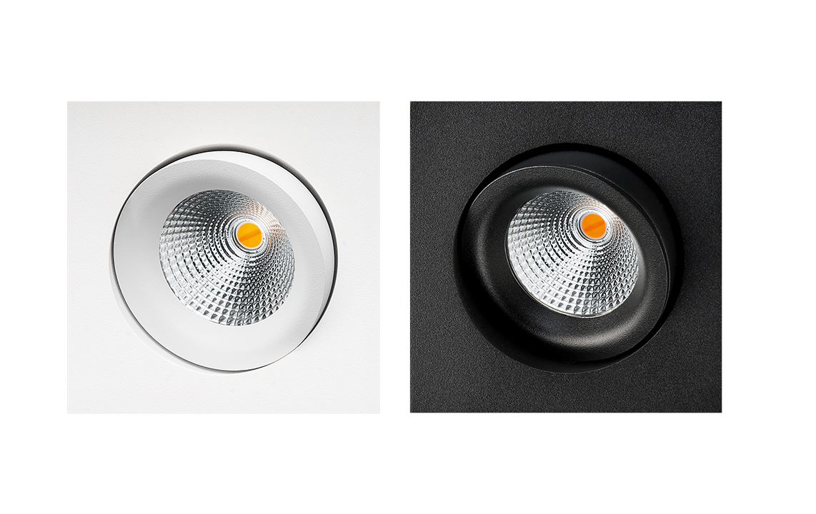 Luminaire pour l’intérieur, inclinaison 30 degrés, gyroscopique sur 360 degrés. Montage directement dans l’isolant déroulé. Module LED intégré avec DimToWarm 2000-2800K, dimmable par coupure de phase. Réalisé en fonte d’aluminium poudre polyester ou acier brossé, diffuseur verre. Faisceau 42 degrés. Encastrement faible hauteur dimension de perçage Ø83. Montage sans outils avec connecteur rapide repiquable.