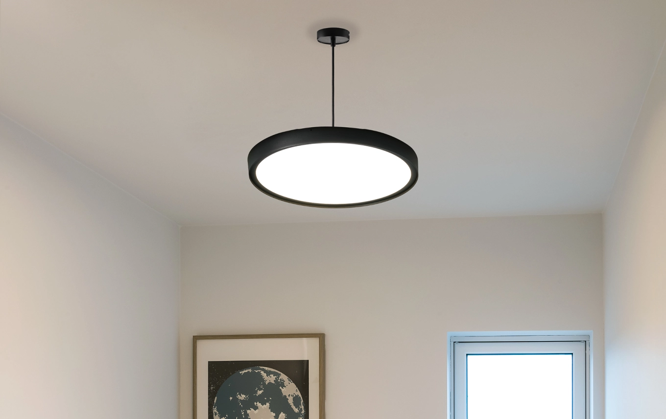 Disc 480 en saillie ou suspendu offre à un look moderne et épuré aux arêtes vives, un diffuseur opalprismatique lui confère une lumière douce et non éblouissante. Economique en énergie avec plus de 100lm/w, il est équipé d’une alimentation Switchable en mA lui permettant d’adapter le flux lumineux en sortie de luminaire en fonction des nécessités. Réalisé en fonte d’aluminium et revêtu d’une poudre polyester Noire ou Blanche, il peut-être équipé en Tunable White 2700-6500K piloté avec nos modules LEDDim Smart.