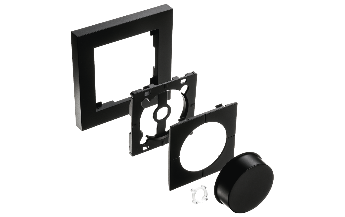 - Convient pour LEDDIM TW/MASTER/DALI à partir de V5<. Y compris le bouton noir, l’écrou, le bouton-poussoir noir, le cadre intérieur noir et le cadre extérieur noir