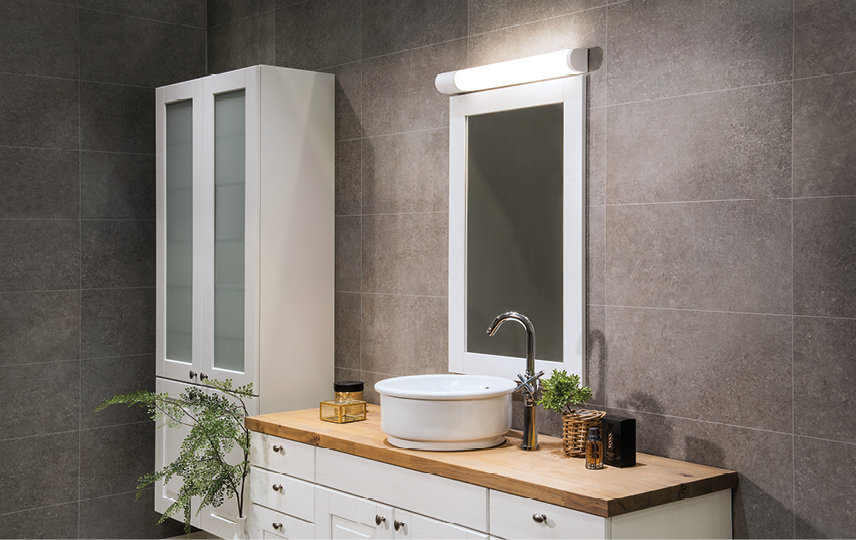 Lampada da bagno con o senza presa e coperchio a cerniera. Apparecchio in metallo e alluminio con diffusore in acrilico. Montaggio posteriore o laterale con facile accesso a cavi e terminali, con possibilità di rimontaggio.