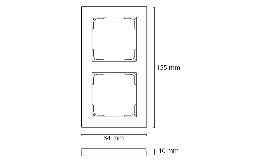 Cornici Nero 2X, Numero di articolo: 78011, EAN: 7021987801117, IP21, Protezione: Classe IP: IP21, Energia e autorizzazioni: BVB: Yes, Materiali e finiture: Alloggiamento: Policarbonato (PC), Colore: Nero RAL 9004, Senza alogeni: Yes, Montaggio/Collegamento: Montaggio: Montaggio a superficie, Indoor, Dimensioni: Lunghezza (mm) L: 155, Larghezza (mm) W: 84, Altezza (mm) H: 10, Peso (kg) lordo/netto: 0.032 / 0.027, Imballaggio: Packaging dimensions (mm): 155 x 84 x 10, Numero per confezione: 12