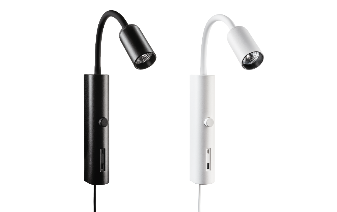 Die Tube Wall ist eine stilvolle Leuchte zur Wandmontage mit einem integrierten Lichtdimmer und einem Ladegerät mit USB-A und -C-Anschluss. Sie eignet sich beispielsweise als Leseleuchte am Bett – zu Hause oder in Hotels und Krankenhäusern. Der Leuchtenkopf ist mit dem Schwanenhals-Arm frei einstellbar. Die Tube Wall ist standardmäßig mit einem schwarzen Blendring mit geringer Blendwirkung ausgestattet. Andere Blendringe in Weiß oder Gold sind als Zubehör erhältlich. Zum Lieferumfang zählt ein leistungsstarkes USB-Ladegerät, das bis zu 3 A (18 W) liefert. Wenn beide Anschlüsse in Betrieb sind, verteilt das Ladegerät die Leistung automatisch so, dass das Gerät mit dem niedrigsten Akkustand die meiste Leistung erhält.