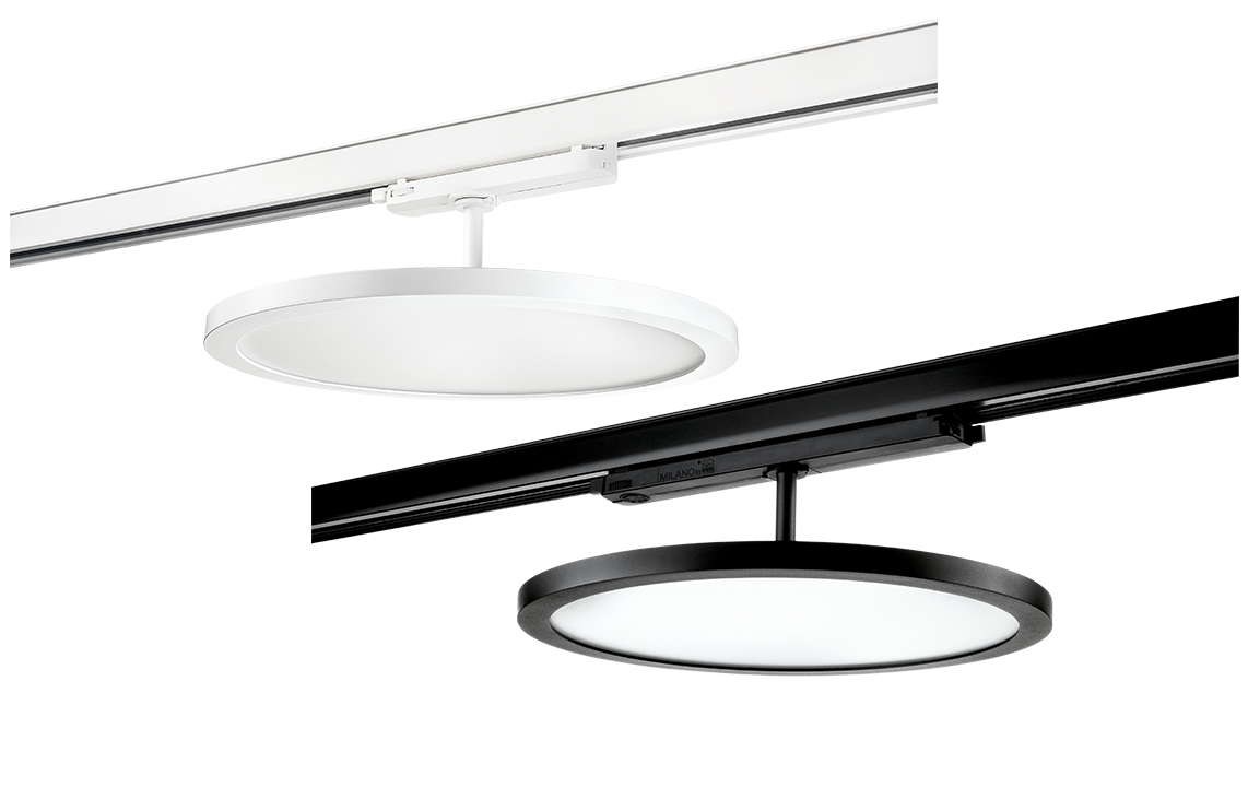 Armatur til almen belysning til trefasede ShopLine-skinnesystemer. Det kan endda bruges med andre skinnesystemer, der passer til Global-adaptere.Stilfuld, tynd skive med opal prismatisk front, der retningsbestemmer lyset og sikrer lav blænding. Driveren er integreret i skinneadapteren.