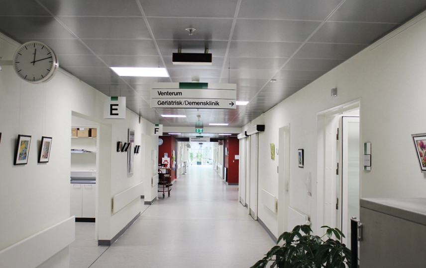 Sense Clean er et energieffektivt LED-panel, som er særligt velegnet til sygehus. Panelet er IP44 og udstyret med en prismatisk afskærmning, der er glat og nem at rengøre. Afskærmningen giver en meget lav blænding på UGR<18. Armatuet kan monteres i lofter med synlige T-skinner uden tilbehør og i lofter med skjulte T-skinner med tilbehør.