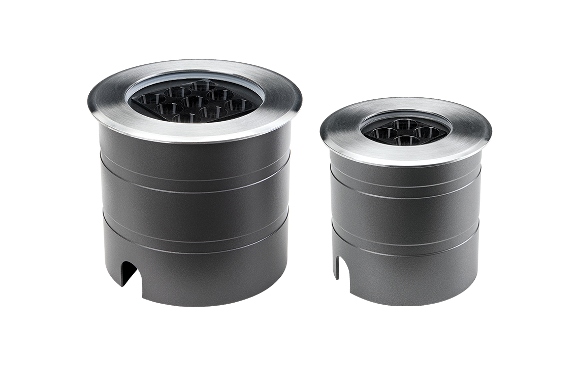 Nemo II / Sirak er kraftigte indbygningsarmaturer til dekorativ og funktionel belysning af facader, vægge, haver og gårdhaver. Godkendt til 2000 kg belastning.