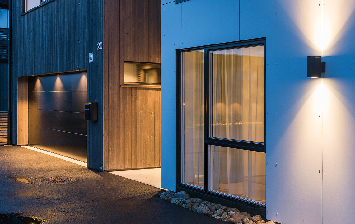 Kubisk armatur til udendørs montering på væggen. Fremstillet af trykstøbt pulverlakeret aluminium i sort, hvid eller grafit. Skærm i hærdet glas. Findes med op-/nedlys eller kun nedlys. Armaturet har udskiftelig GU10 LED lyskilde (medfølger) og kan dæmpes med fasedæmp. Vi anbefaler LEDDim 200, LEDDim 400 og LEDDim Smart. Nem montering med vægbeslag med stikforbindelse til lampen, to kabelindgange og mulighed for både synlig og skjult kabelføring. Kan monteres på hjørner med hjørnebeslag (sælges separat).