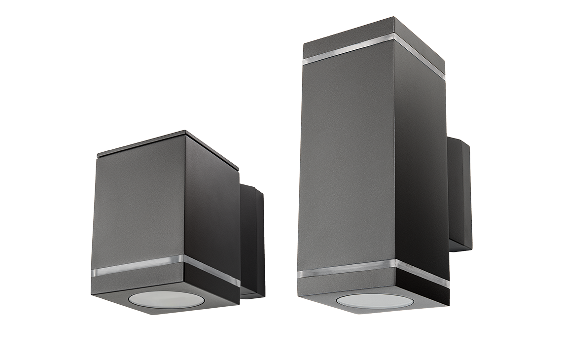 Dekorativ firkantet udendørs vægarmatur. Den dekorative lysende linje i armaturhuset giver armaturet et fint udtryk, udover det indirekte op/ned lys. Produceret i trykstøbt, pulverlakeret aluminium. Udskiftbar GU10 lyskilde (inkludert) og dæmpbar. Vi anbefaler LEDDim200 og LEDDim Smart. Hurtig og nem montering med vægbeslag med skillekontakt til lampen, to kabelindgang og mulighed for både synlig og skjult kabling. Kan monteres på hjørne med hjørnebeslag (sælges separat).