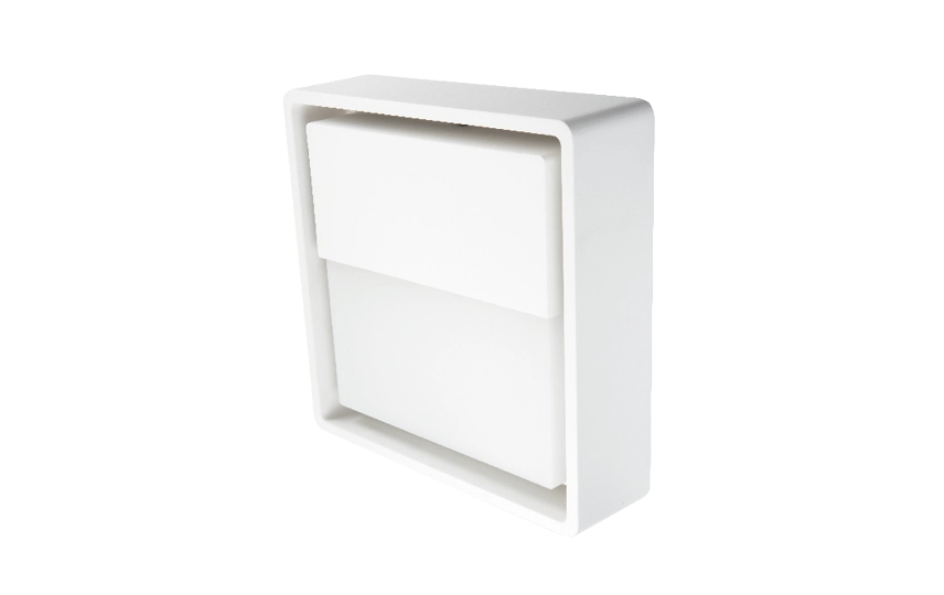 Design: Holscher Design. Frame er et attraktivt moderne armatur med direkte lys. Armaturet kan monteres både på vægge og lofter, både indendørs og udendørs. Fås som firkantet, rund eller rektangulær i flere størrelser. Flad diffusor lavet af UV-stabiliseret opal polycarbonat. To ind- og udgange til kabler, mulighed for både synlig og skjult kabling og loopable quick clips. Produceret I trykstøbt, pulverlakeret aluminium i sort, hvid eller grafit. IP66 og vandal-resistent rating IK10.Lumenværdien kan indstilles med dipswitch.