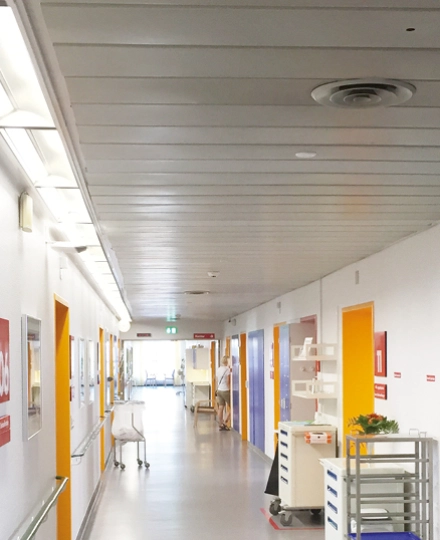 På Sygehus Lillebælt i Vejle er 2.100 armaturer blevet udskiftet, hovedsageligt med Tripar Medico LED-armaturer.