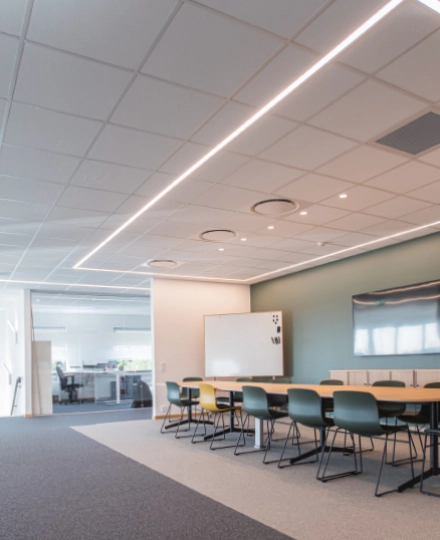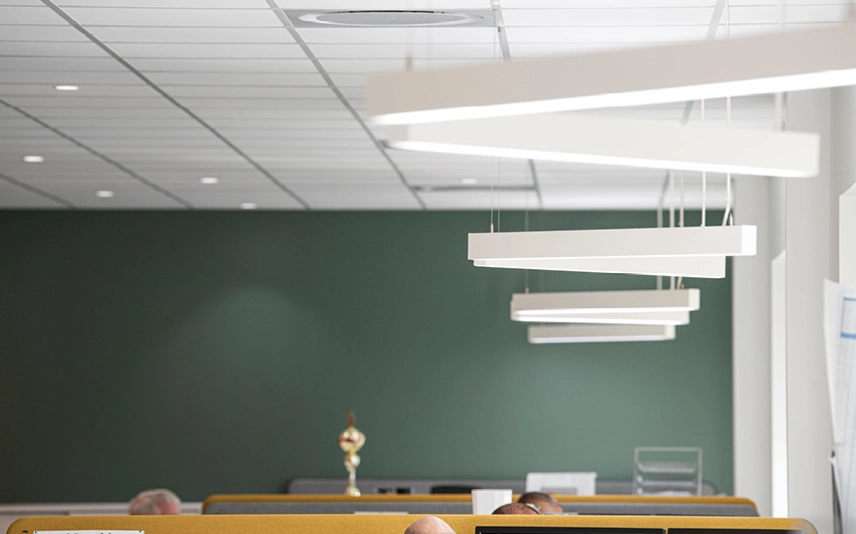SG's svenske team udviklede i samarbejde med SG's Custom Design-team en skræddersyet løsning med en indbygget version af Lineal-armaturet i fællesområderne. I konferencelokalerne bruges det indbyggede Lineal-armatur sammen med Junistar Soft. Over arbejdspladserne er Lineal ophængt som individuelle armaturer suppleret med Junistar Soft med TW LEDDim-styring.