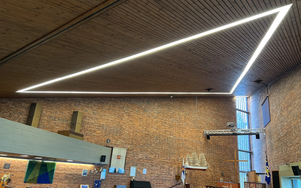 Belysning er en integreret del af arkitekturen. Da belysningsarmaturerne i Upinniemi Sea Chapel var ved at være udtjente og skulle udskiftes, vidste Techniplan Oys designer Jorma Mansner, at den eneste rigtige løsning var specialfremstillede armaturer. Målet var at designe, fremstille og installere nye armaturer, som kunne erstatte de forældede armaturer, uden at det var nødvendigt at ændre loftkonstruktionen. Placeringen på det finske forsvars område, den tårnhøje loftkonstruktion samt armaturernes massive størrelse og særprægede udformning var andre vigtige udfordringer for projektet. En af lyskilderne har form som et parallelogram, mens en anden er trekantet, så de begge følger skibets arkitektoniske linje. Mansner vidste, at SG Armaturen er specialister i denne type projekter, så han besluttede at kontakte Jari Reinikka.
