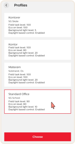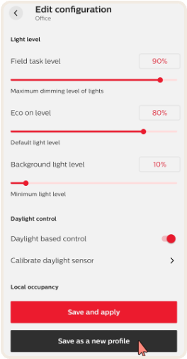 Profiler bruges til at gemme en kombination af konfigurationsparametre (f.eks. lysniveauer, tilstedeværelse, dagslysstyring og timere) til specifikke anvendelser.