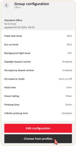 For at genkalde en profil skal du klikke på "Vælg fra profiler" i stedet for "Rediger konfiguration". Vælg den rigtige profil på listen, og tryk på "Vælg".