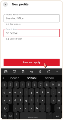 Når du ændrer en konfiguration, skal du i stedet for "Gem og anvend" vælge "Gem som en ny profil" og give profilen et navn og eventuelt en lokalitetsbeskrivelse.