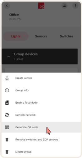 For at generere en QR-kode til en zone skal du klikke på de tre prikker ved siden af zonenavnet og vælge "Generer QR-kode".