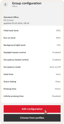 Vælg "Rediger konfiguration", og ændr parametrene for lysniveauet.