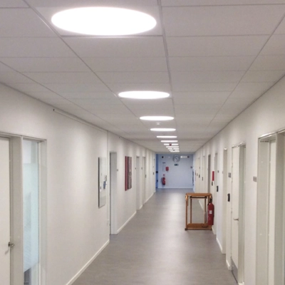 Eksempler på, hvordan vi gør det, er (1) rehab-ringe til at tilpasse eksisterende huller i loftet, (2) påbygningsarmaturer, der dækker den eksisterende løsning, (3) Tunable White, der gør det muligt at justere lysets farvetemperatur i løbet af dagen, og (4) Connect med sensorer til intelligent lysstyring.