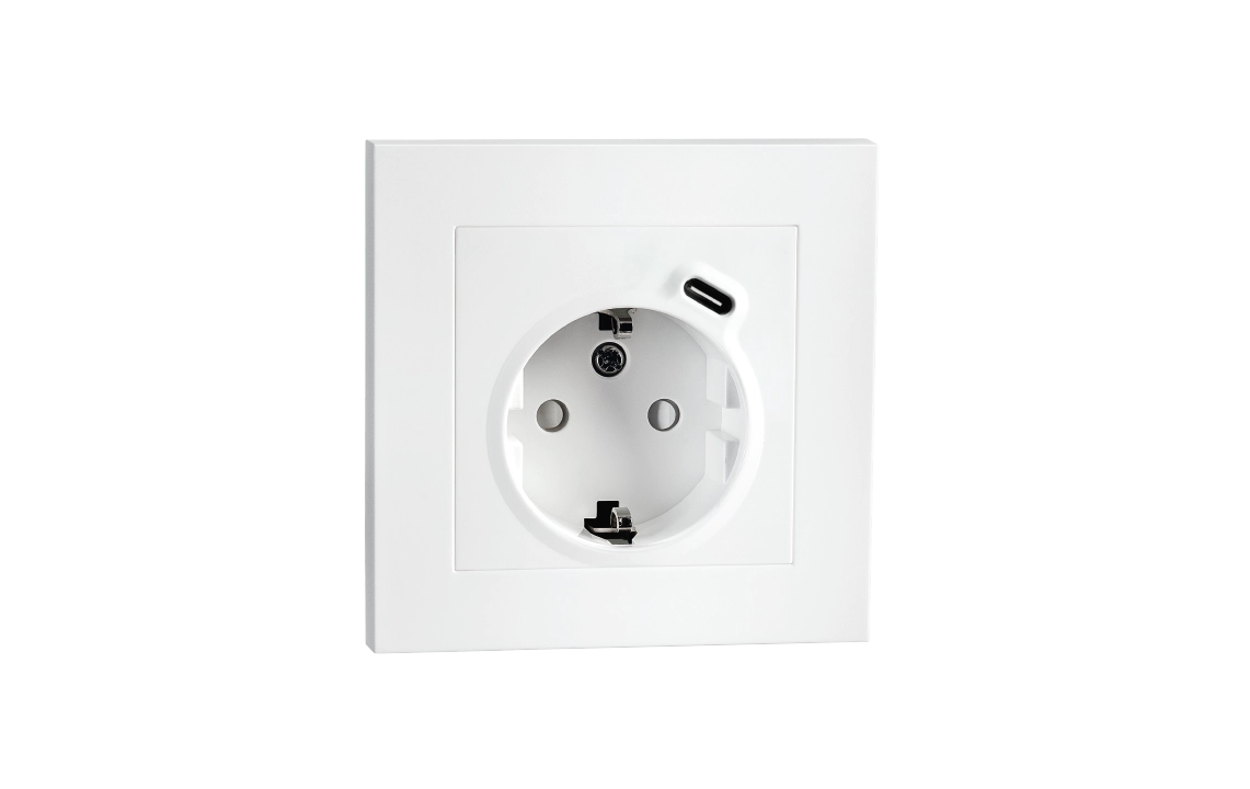 Pistorasia uppoasennus Valkoinen yksinkertainen maadoitettu + USB-C-laturi