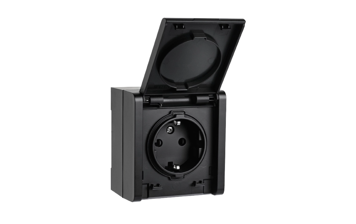 Pistorasia pinta-asennus Musta IP44 1 osainen maadoitettu