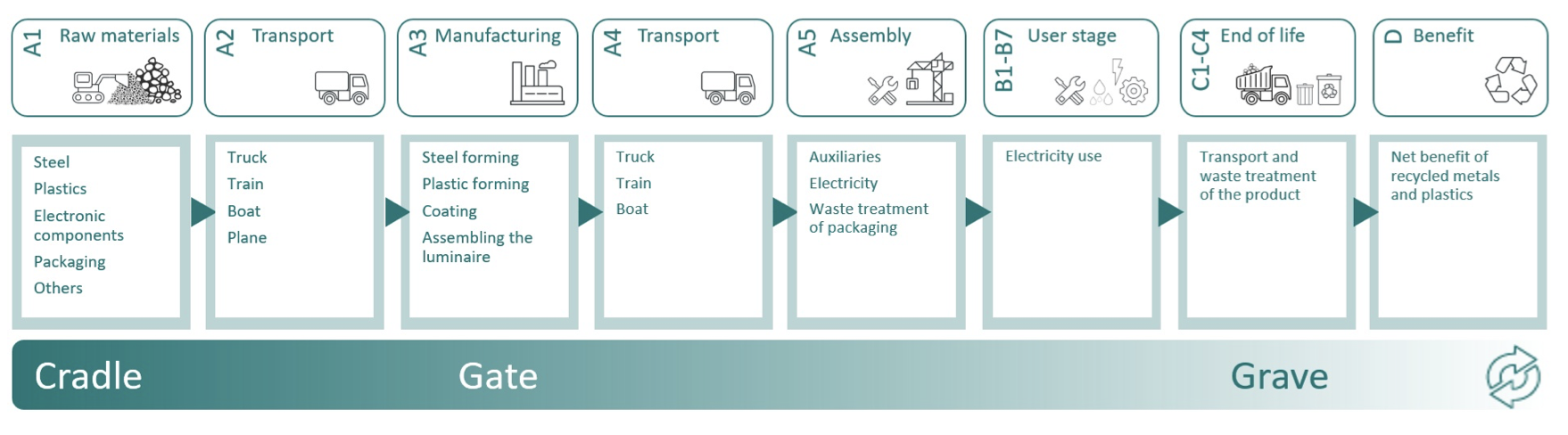 When comparing EPDs from different lighting suppliers, it’s important to look beyond the final numbers. Although the EPD format is standardized, the underlying assumptions made by each manufacturer can vary significantly.