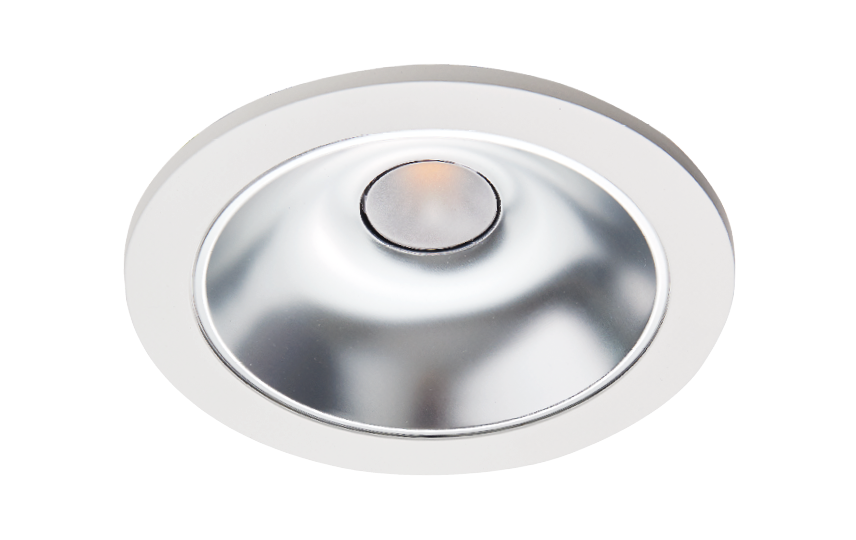 Recessed mounted LED downlight. Made of fire-resistant polycarbonate. SDCM 2. L90/B10>100,000, Supplied with 3000K/4000K LED. Complete with driver and quick connection between driver and downlight for super quick and easy mounting. Can be mounted to ceiling panels with a thickness of 1–50 mm. The luminaire comes complete with ceiling ring RAL9010 gloss 25 made of die-cast aluminium. Matt reflector.