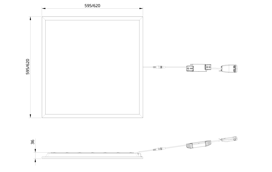 Sense Basic 600x600 White Cable and plug 2m 3070lm 3000K Ra>80 Trailing edge