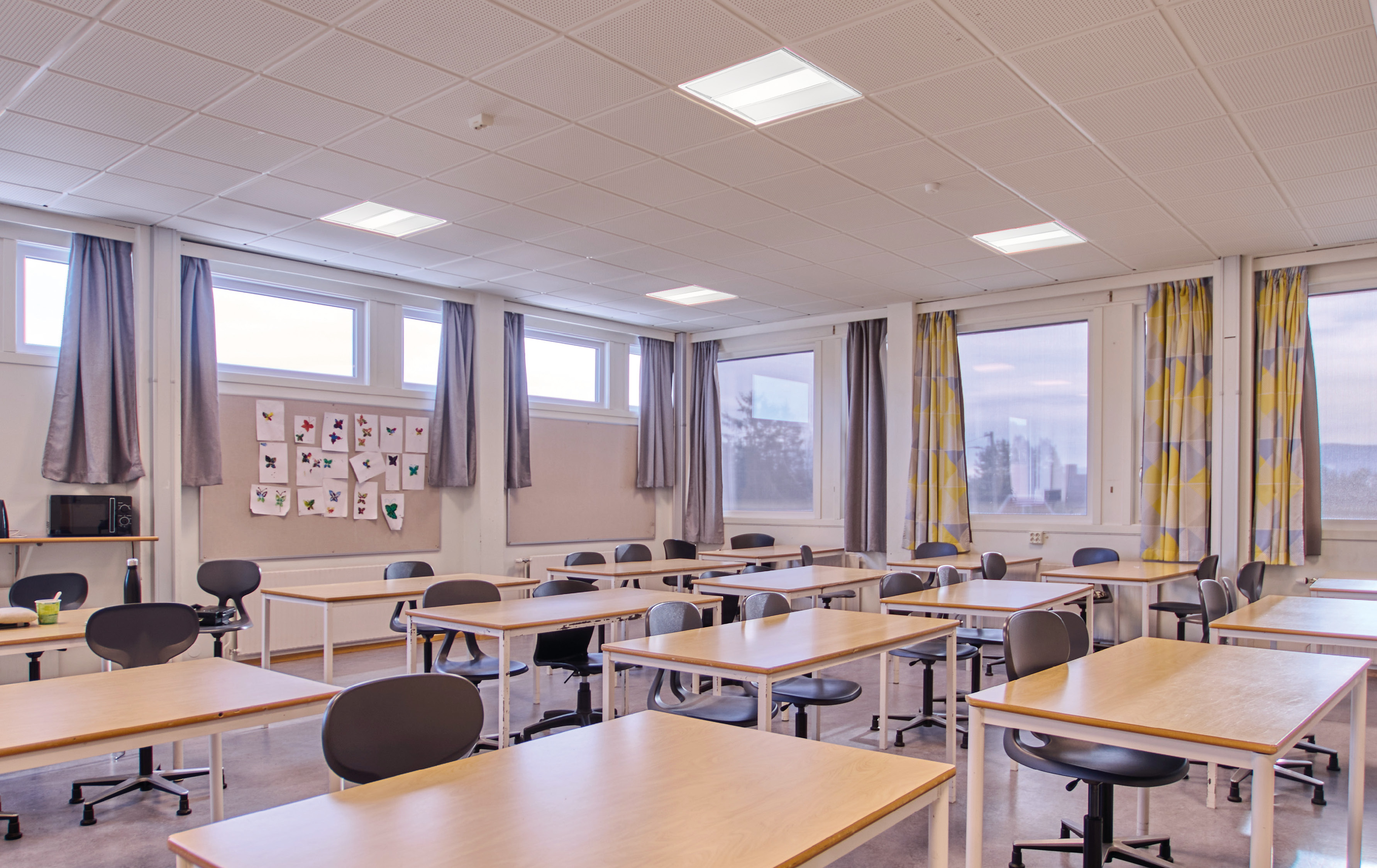 Sense Velios is designed for ceilings with visible T-rails. Profiled contrast-reduction panels and high-performance central optics give uniformly diffuse lighting. High Energy efficiency. Exceptional glare control gives high degree of visual comfort. Dip switches available for adjustment of light output.