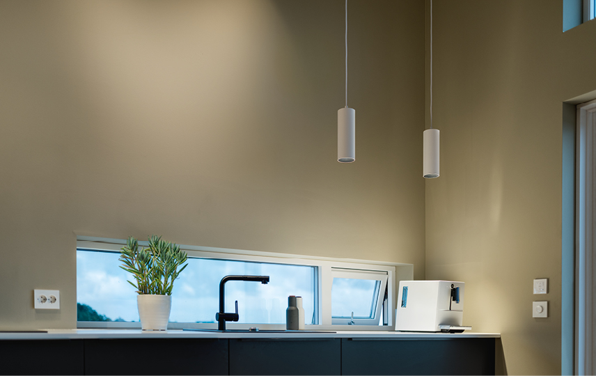 Long lifespan, excellent color rendering, and high lumen output make the Tube Eco Pendant an ideal choice for shops and exhibitions. The recessed light source provides very low glare. The fixture has a minimalist and exclusive design.