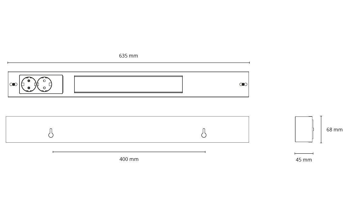 Namsen 600 White w/ 2 x outlet 920lm 3000K Ra>80 DALI-2 / Push Dim