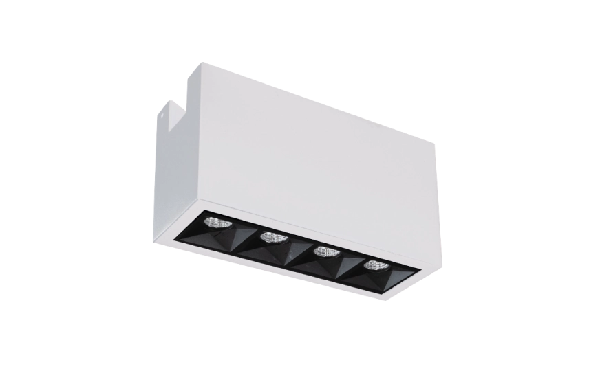 Zip Inspire is a rectangular surface mounted downlight for the Zip track system. With cubist black reflectors it has very low glare and harmonious non-flickering light with a well-defined light pattern. Flexible solution for modern residential environments. Ideal for illuminating a kitchen island, dining table or other areas in need of focused and well shielded light.